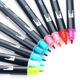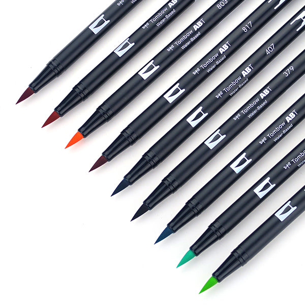 Tombow Dual Brush Pens are available in 108 colors and have two tips - one fine bullet tip and one flexible and resilient nylon brush tip. Use the bullet tip for drawing consistent fine lines. Use brush tip for painted effects, and creating fine, medium, and broad strokes. Their water-based and water-soluble ink can be blended easily with water or make custom mixes with other colors. The ink is also acid-free, non-toxic, and odorless.