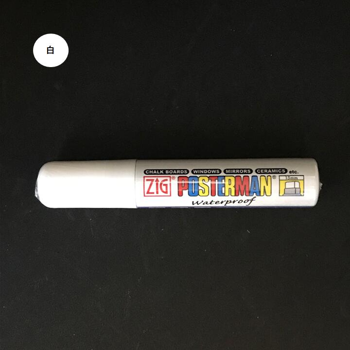 The Kuretake ZIG Posterman Chalkboard marker features a wide 15 mm chisel tip and special ink formula that is opaque, waterproof, and lightfast. Ideal for indoor and outdoor use. Its ink can be removed from non-porous surfaces with a damp cloth or glass cleaner. The ZIG Posterman Chalkboard marker is suitable for chalkboards, whiteboards, glass, plastic, mirror, metal, and ceramics.
