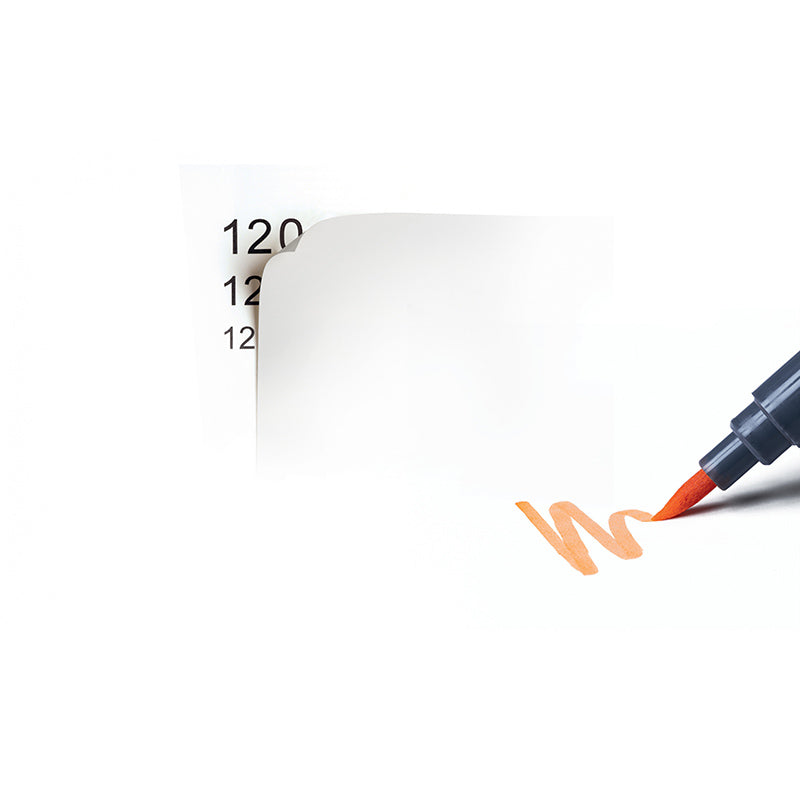 The 120gsm paper is ideal for a variety of writing instruments. Thanks to the special processing of milling, the paper features low transparency with a smooth surface, prevent the ink from bleeding even with fountain pens. The smooth surface also reduces friction to a low level to provide you a pleasant writing experience.