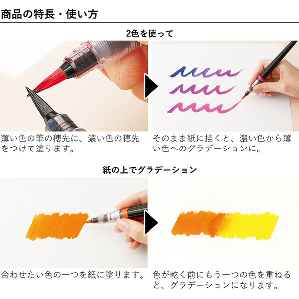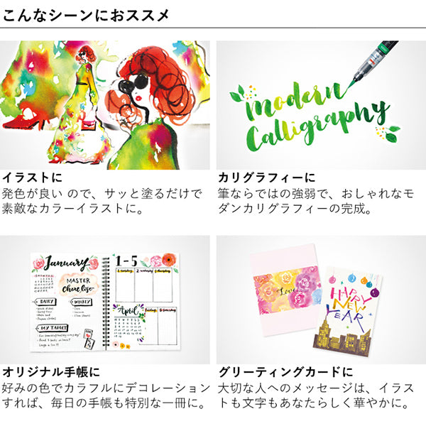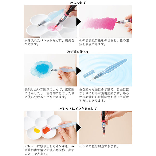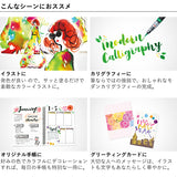 The convenience of a brush pen meets the eco-friendly ink refillabilitiy in Pentel’s Art Brush Pens. The nylon brush tips and water-based dye ink combine to provide a smooth flowing ink that provides consistent colour over wide areas. Unless you don’t want it to, that is. These pens are easily blendable by touching the tips. As they are water-soluble, it is easy to lighten the tone by dipping the tip in water.
